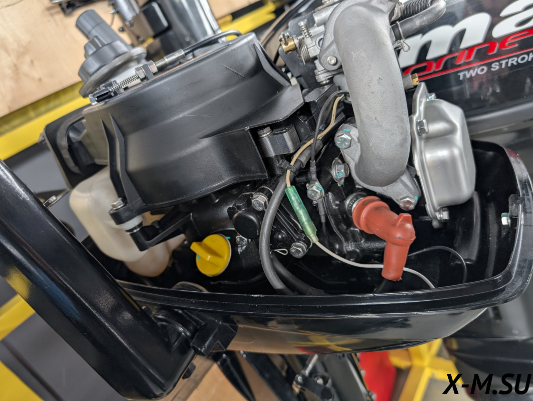 MP 9.9 AMHS: Лодочный мотор Marlin Outboards, двухтактный, 9,9 лошадиных сил, ручной запуск двигателя, румпельное управление, короткая нога (дейдвуд).