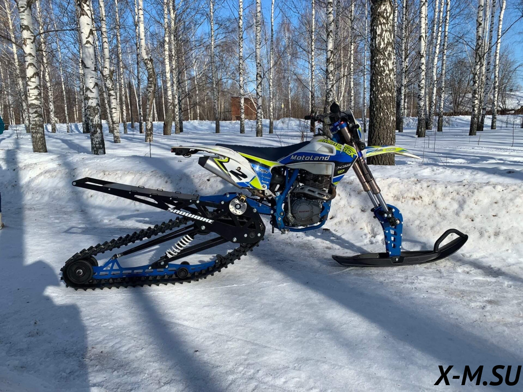 Folk 121 от Snowbike — универсальный гусеничный комплект для внедорожных мотоциклов. Гусеничный мотоцикл (СНОУБАЙК) это, по сути, одноколейный снегоход. Вы получаете возможность продлить мото сезон и эксплуатировать мотоцикл не только летом но и зимой.
